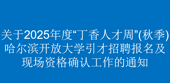 根据哈尔滨市人力资源和社会保障局2025年9月12日发布的《2025年度哈尔滨“丁香人才周”(秋季)事业单位引才招聘公告》,现就哈尔滨开放大学本次引才招聘报名及现场资格确认工作具体事宜通知如下: