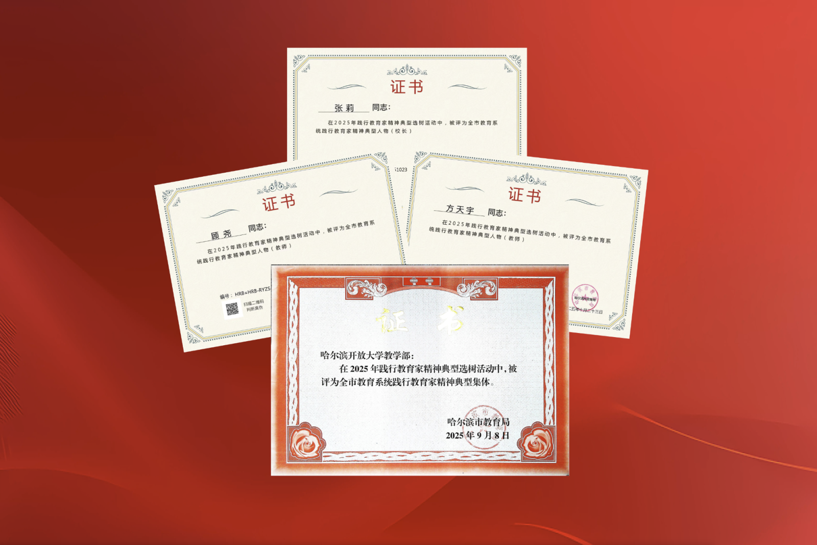 在2025年哈尔滨市教育系统践行教育家精神典型选树活动中,我校教学部荣获“全市教育系统践行教育家精神典型集体”荣誉称号,张莉副校长荣获“全市教育系统践行教育家精神典型人物(校长)”荣誉称号,方天宇、顾尧荣获“全市教育系统践行教育家精神典型人物(教师)”荣誉称号。这些荣誉是对我校教育教学工作和教师队伍建设成果的充分肯定。