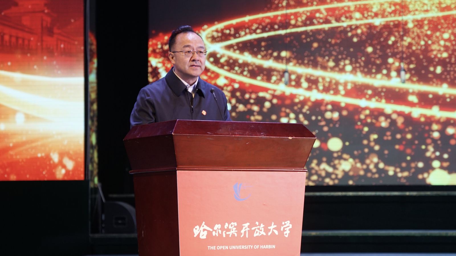党委书记张国明在致辞中表示,学校65年来始终与国家同频、与龙江同行、与冰城共进,在学历教育、社会培训、终身学习体系建设与数字化转型等方面成果显著,已成为“百姓身边的大学”。未来,学校将锚定“特色鲜明、区域领先、国内一流中心城市开放大学”目标,实施“十大工程”,为龙江振兴与哈尔滨发展贡献开大力量。