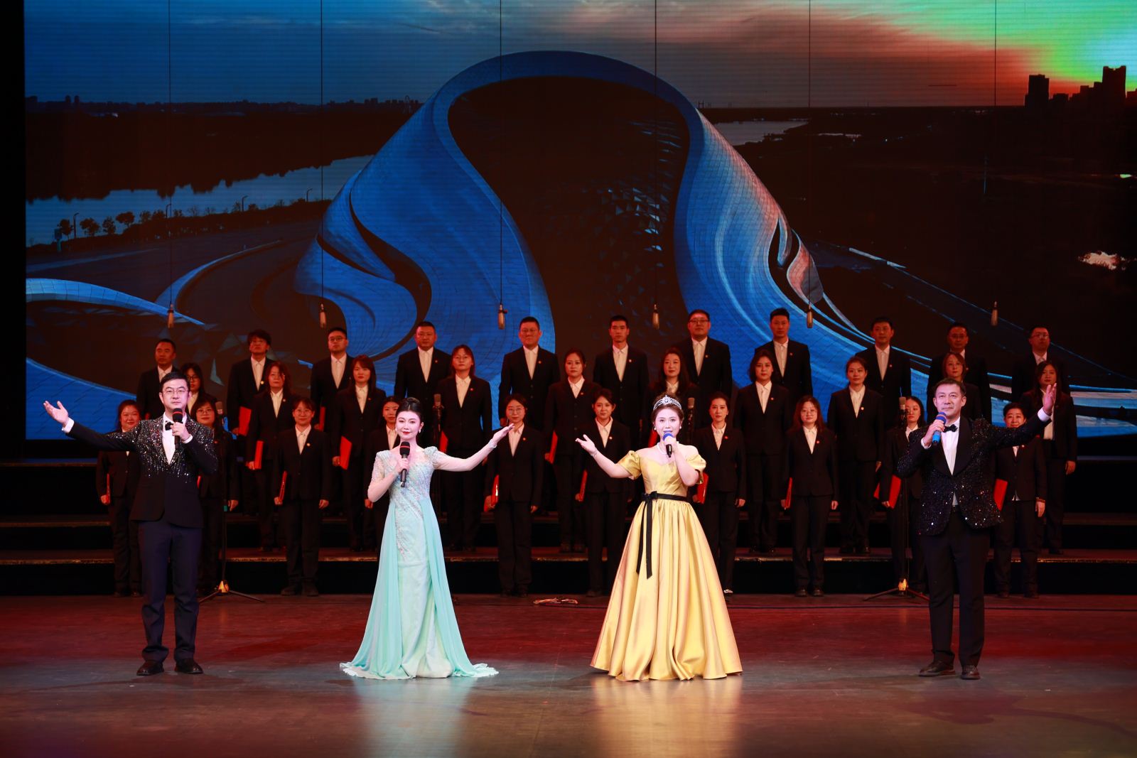 活动现场展示学校教师制作的AI作品,诗朗诵《逐光而行》表达教育信仰,大合唱《万疆》凝聚奋进力量,展现全体开大人携手迈向未来的坚定信心。