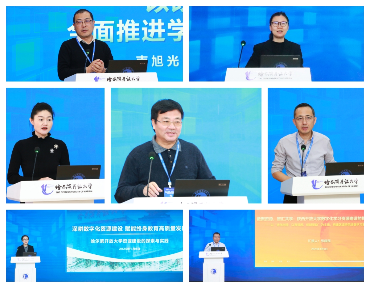 1月9日,由哈尔滨开放大学承办的第十六届网络教育数字化学习资源中心工作研讨会顺利召开。本次会议由网络教育数字化学习资源中心、国家开放大学数字化学习资源中心、国开泛在(北京)教育科技有限公司主办,来自全国19个省(市)21所开放大学及中高职院校的60余位校领导、嘉宾与代表齐聚一堂,国家开放大学党委副书记徐明军出席会议并致辞,哈尔滨开放大学党委书记张国明致欢迎辞,哈尔滨开放大学党委副书记、校长白宝彦,副校长陈琳晶,国开泛在(北京)教育科技有限公司副总经理吕英娜分别主持会议。