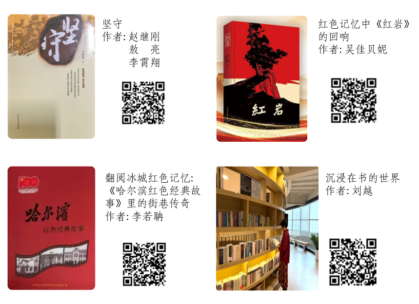 本次活动共征集作品27件,多个作品在国开评选中脱颖而出:驻村工作队赵继刚、敖亮、李霄翔共同录制的《坚守》,以五常抗日英雄汪雅臣事迹诠释抗联精神,荣获“暖心阅读感悟奖”;吴佳贝妮以《红色记忆中〈红岩〉的回响》深情讲述红岩故事,并演唱《绣红旗》,荣获“暖心阅读感悟奖”;李若聃结合学校所在地——以赵一曼命名的一曼街,讲述《翻阅冰城红色记忆:<哈尔滨红色经典故事>里的街巷传奇》,获评“优秀风采作品奖”;刘越的《沉浸在书的世界》则在“阅读之美”活动中荣获“帧藏书香作品”奖。我校再次荣获“优秀组织单位”称号。