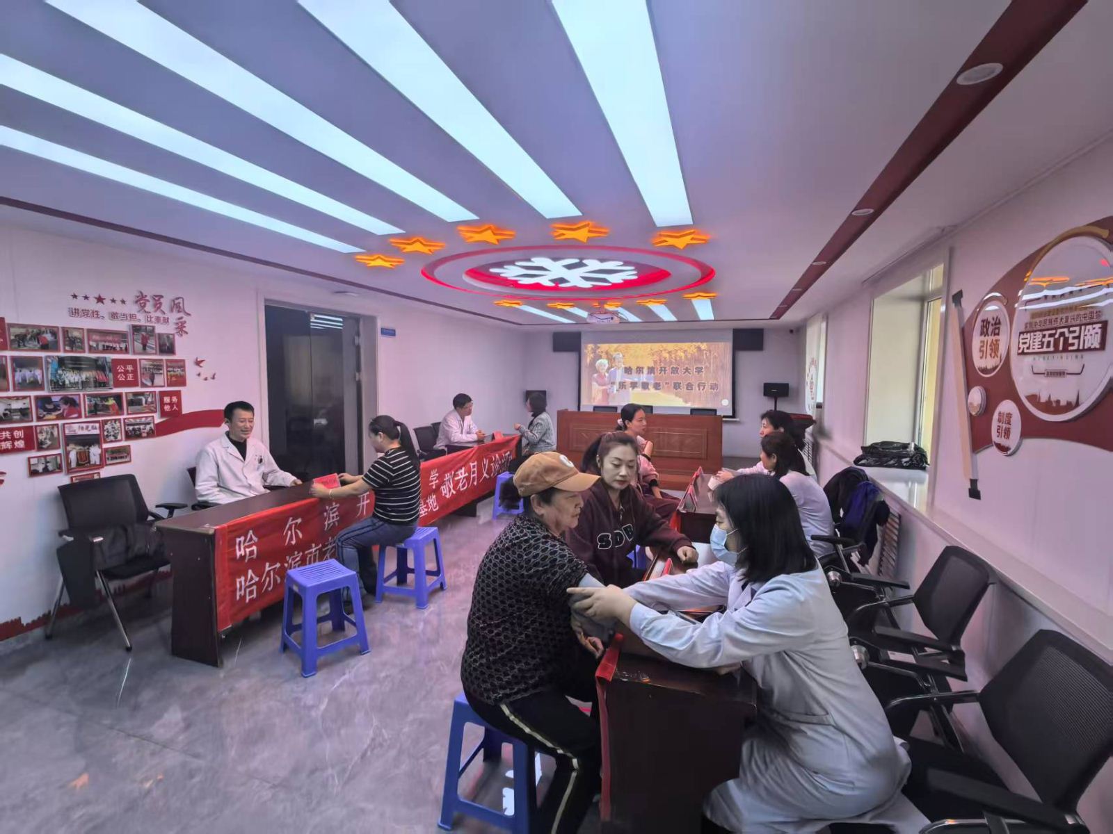 哈尔滨开放大学还联合南岗社区教育学院、市老年学学会的医学专家,走进七政街道阳光社区开展义诊活动,骨科、老年病科、全科等多个科室的医学专家坐诊,为社区居民提供专业的医疗咨询和健康检查服务。专家们耐心地接待每一位居民,询问病史、身体现状及日常用药情况,为他们进行细致的身体检查,帮助他们更好地控制病情,解答他们在日常生活中遇到的各种健康问题。