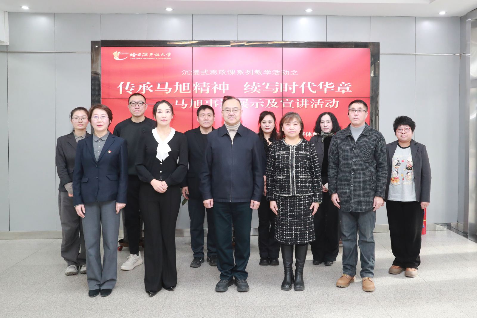 2025年11月20日上午,哈尔滨开放大学教学部马克思主义学院、宣传部联合木兰开放学院与马旭文博艺术中心,共同举办马旭事迹展示和宣讲活动。师生代表齐聚现场,以“传承榜样力量、厚植家国情怀”为核心,感受“时代楷模”带来的精神洗礼。