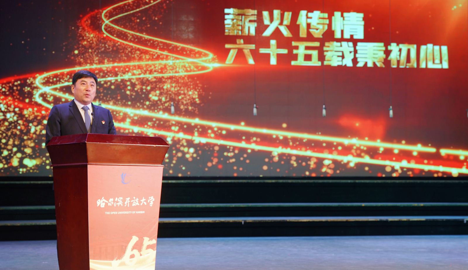 党委书记张国明在致辞中表示,学校65年来始终与国家同频、与龙江同行、与冰城共进,在学历教育、社会培训、终身学习体系建设与数字化转型等方面成果显著,已成为“百姓身边的大学”。未来,学校将锚定“特色鲜明、区域领先、国内一流中心城市开放大学”目标,实施“十大工程”,为龙江振兴与哈尔滨发展贡献开大力量。