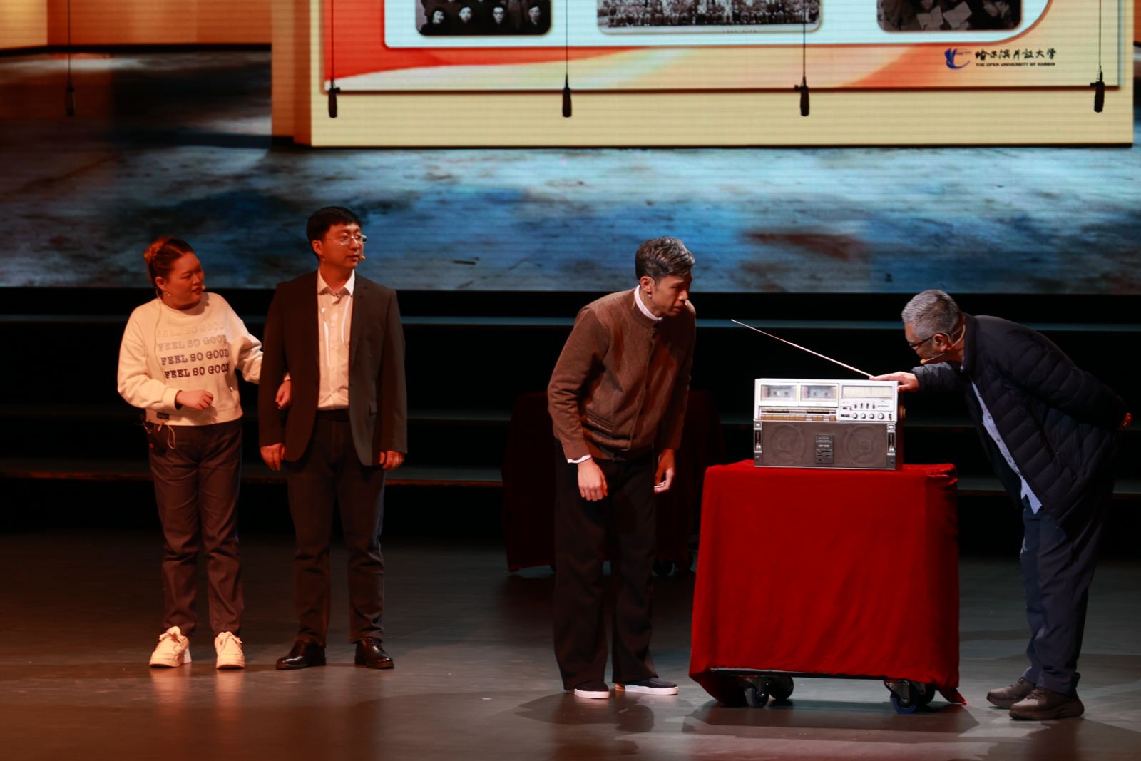 活动现场,各学习中心与社区学院带来精彩演出:舞蹈《芳华正茂》展现青春风采,情景剧《光阴的答卷》讲述三代人与开大的教育情缘,民乐《爱永在》传递教育温情,残疾人学员的舞蹈《心之鼓》彰显教育公平力量,银发学员合唱《祖国颂》抒发家国情怀。这些节目生动诠释了“教育改变命运”的深刻内涵。