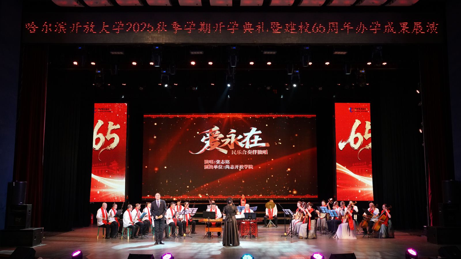 哈尔滨开放大学于11月30日隆重举行2025年新生开学典礼暨建校65周年办学成果展演。活动以“六十五载育桃李,开放逐梦向未来”为主题,分为“薪火传情 六十五载秉初心”“砥砺奋进 开放育人谱新篇”“逐梦未来 弦歌不辍向新程”三个篇章,全面展现学校与时代同行、与城市共进的奋斗历程,为1.2万名2025级新生开启终身学习新征程。全校师生齐聚一堂,共同见证这一历史与未来交汇的光荣时刻。